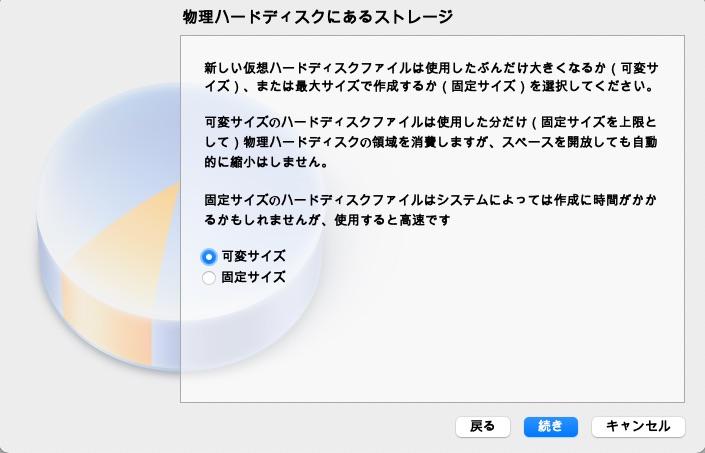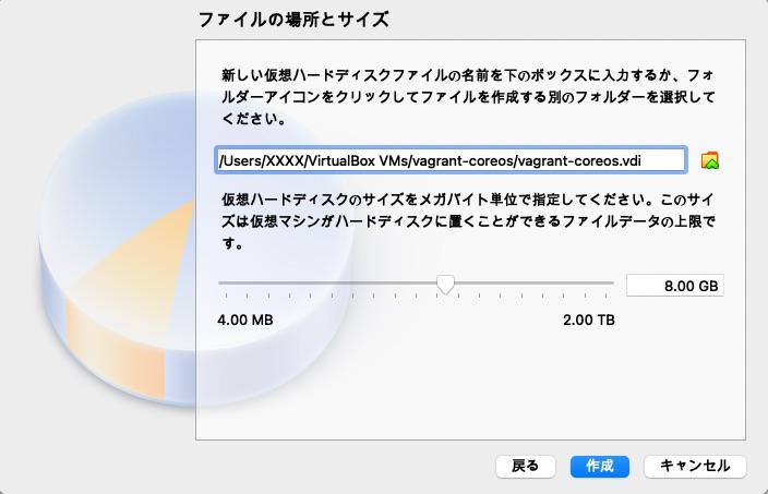 ハードディスクのサイズについては8GBだとOS立ち上げ時に警告が出たため