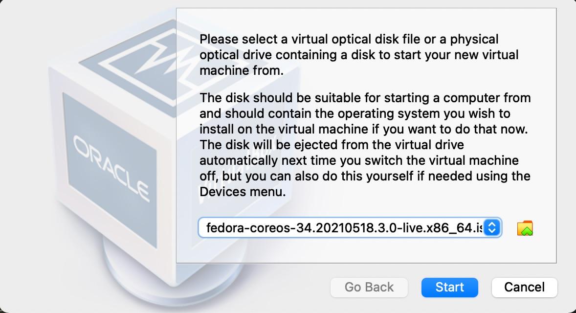 - 1. Fedora CoreOSをVirtualBoxで起動させる